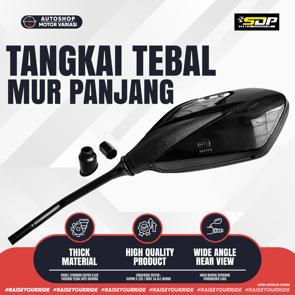 [PROMO] Spion Supra X 125 Standar Original Merk SDP Kaca Cembung Drat 14 Universal Motor Honda