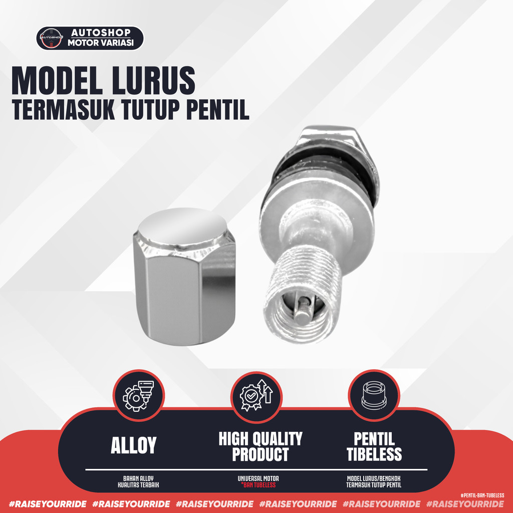 [PROMO] Pentil Tubeless Lurus 48MM TR43E Tubeless Tire Bengkok 45MM VS845 Alloy Universal Motor
