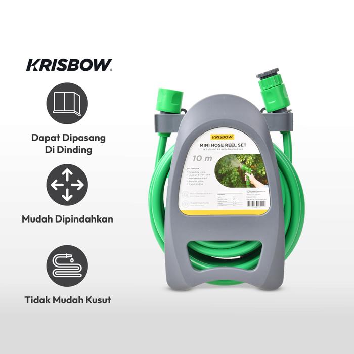 AZKO Krisbow 10 mtr Set Selang Air 5/16 inci - Hijau/Abu-Abu Water Hose Hose Reel Peralatan Rumah Alat Siram Tanaman