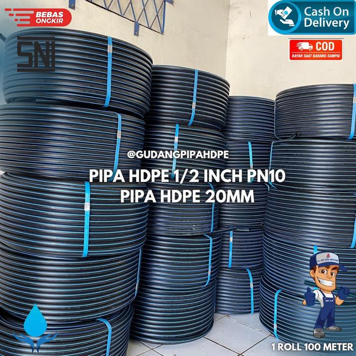 Pipa HDPE Atau Selang Hitam Uk 1/2 Inch Pn10 1 Roll 100 Meter Pipa Hdpe 20Mm