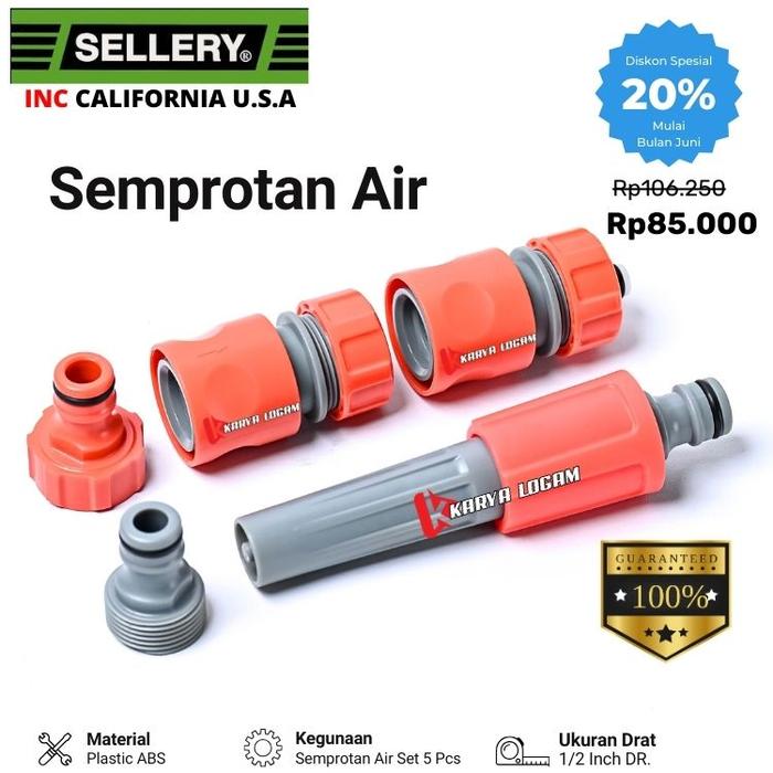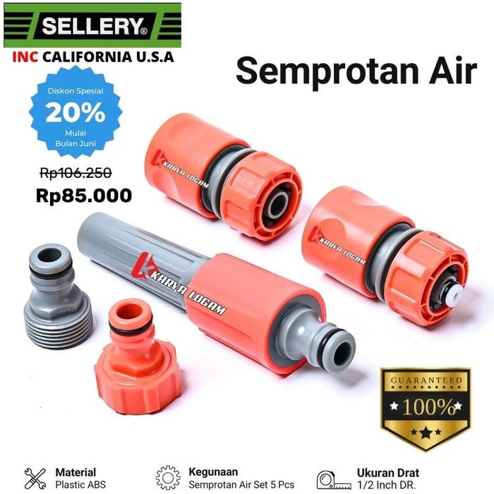 Sellery U.S.A. Paket Semprotan Air Set 5 Pcs Nozzle Adjustable Konektor Selang Plastik ABS Tanaman