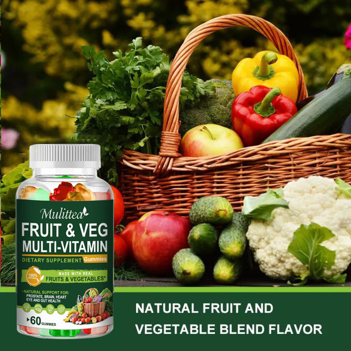 Mulittea Fruit and Vegetable Complex Gummies 60pcs Rich In Multivitamins & Dietary Fiber Whole Foods Superfoods Boost Im