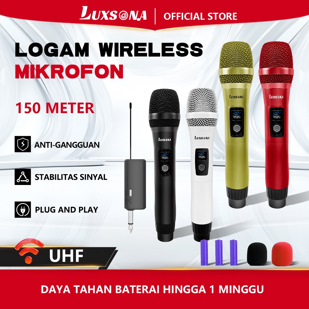 FLASH SALE Professional Wireless Mic Karaoke Meeting HiFi Besar Mikropon UHF Tanpa Kabel Rechargeable Dynamic Mic