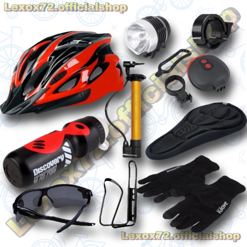 Paket Bersepeda Lengkap _ Helm Sepeda Mtb Original Taffsport + Aksesoris Sepeda (Isi 10Pcs Barang)
