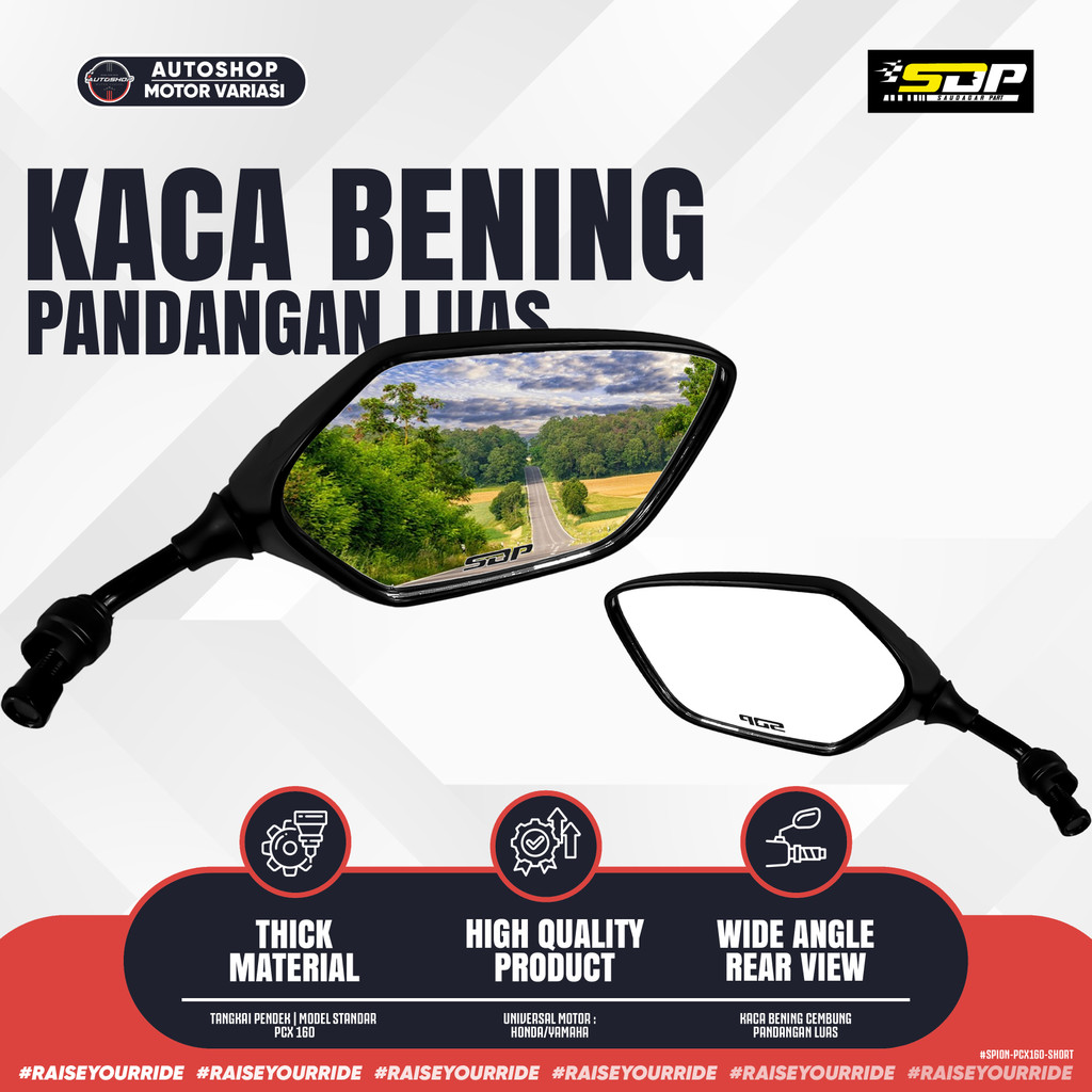 [PROMO] Spion PCX VARIO 160 Tangkai Pendek Kaca Cembung Bening – Pandangan Luas Anti Blindspot Universal Motor