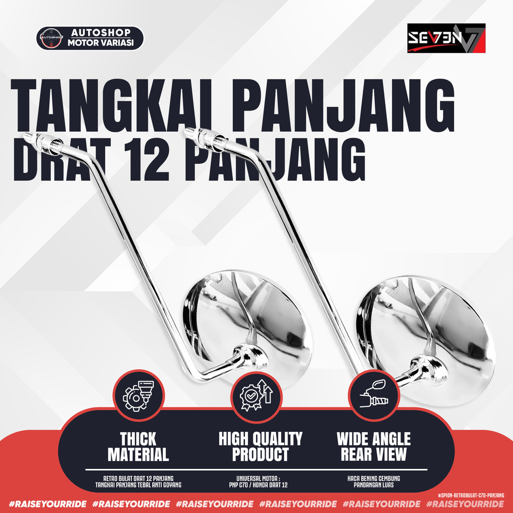 [PROMO] Spion Retro Bulat C70 C90 Tangkai Panjang Besi Drat 12 Kaca Cembung Universal Motor