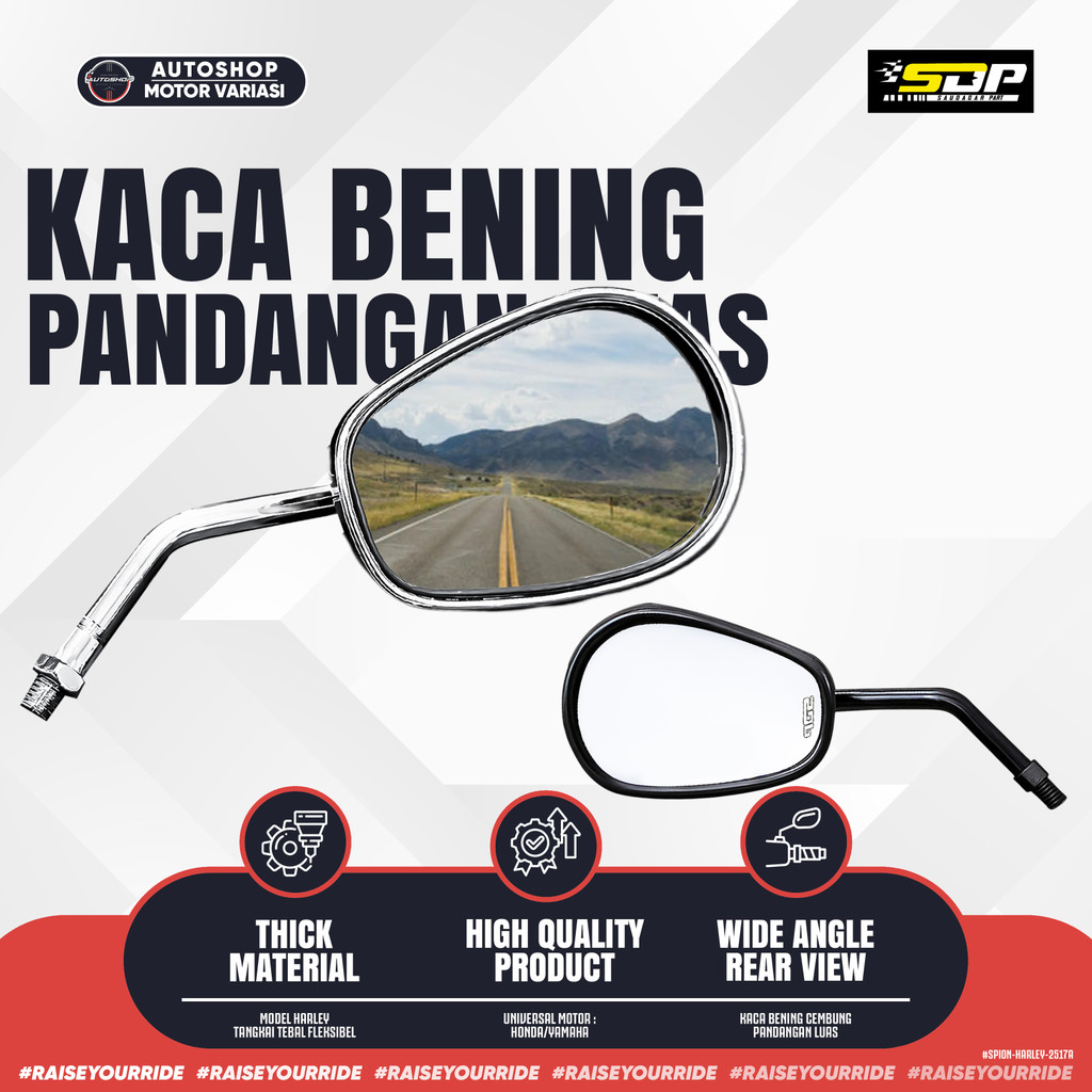 [PROMO] Spion HARLEY Chrome Universal – Tangkai Besi Kuat PNP Motor HONDA YAMAHA Matic Sport