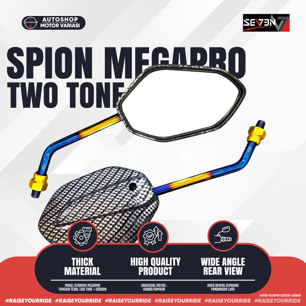 [PROMO] Spion Moge Megapro Two Tone Blue Gold Blue Carbon – Kaca Cembung Bening Universal Honda Yamaha