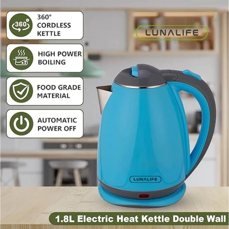 LUNALIFE Teko listrik LK502 Kapasitas 2L Pemanas Air 3 Warna Elektrik Kettle 500 Watt Daya Rendah