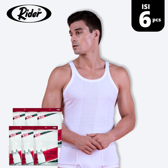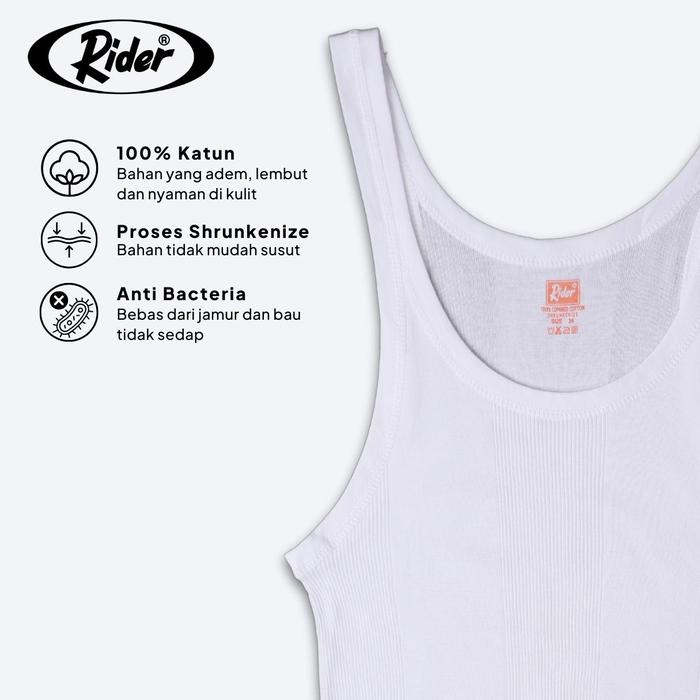 (PROMO HEMAT) RIDER SINGLET CLASSIC - PUTIH TANKTOP KAOS PRIA R123B - SIZE S, 3 PCS