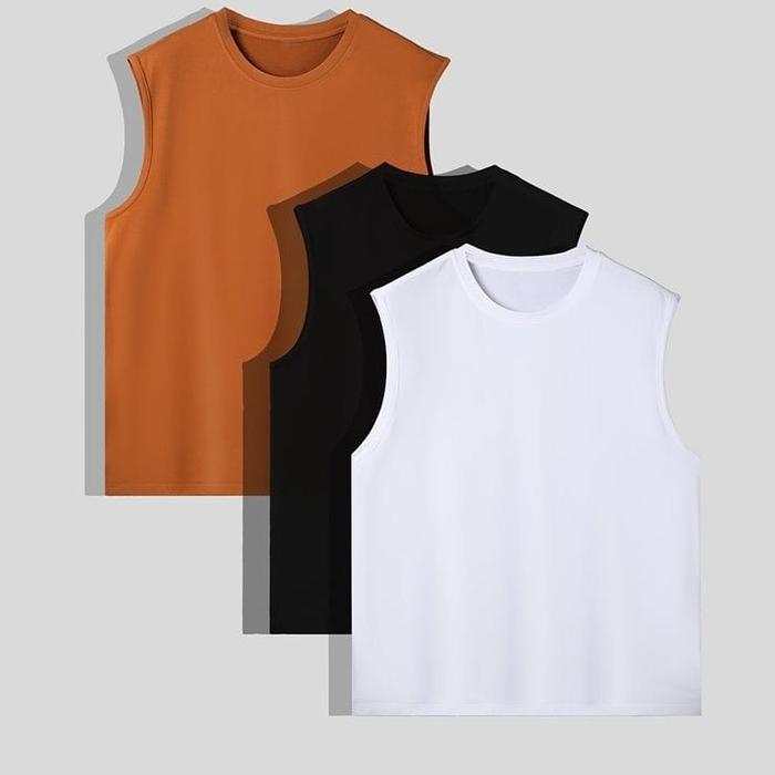 PAKET HEMAT 3 PCS KAOS OBLONG YUKENSI DALAMAN PRIA DEWASA SINGLET KATUN COWOK HITAM PUTIH - S, 2 PCS HITAM