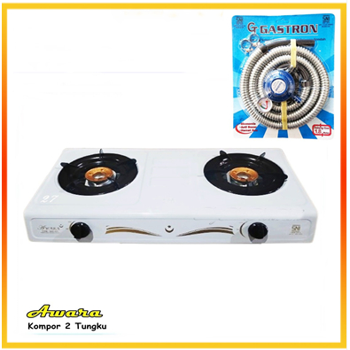 Kompor Gas AWARA 2 Tungku Putih Terbaru SNI + Free Selang Regulator KOJIKO/ MPU Gas