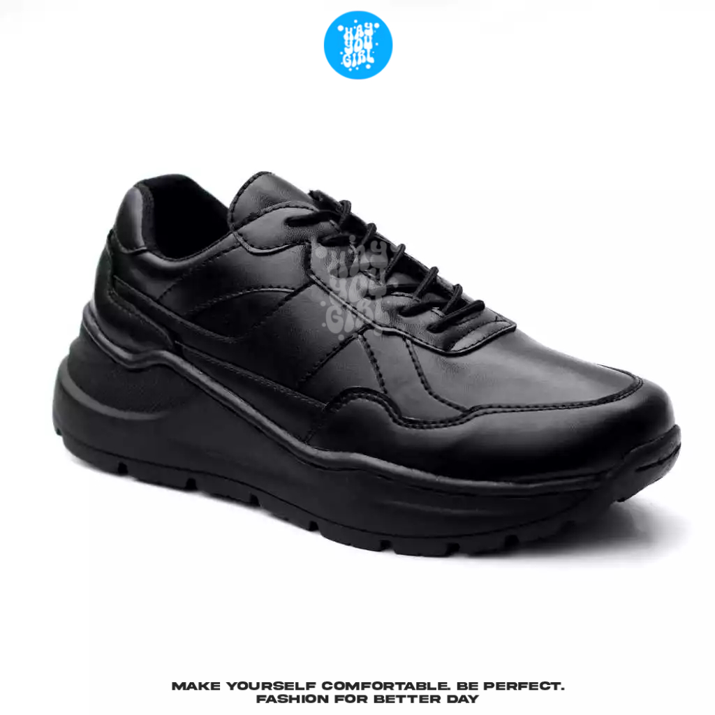 HYG - Sepatu Sneakers Fullhitam Kasual Kerja Pria 39-46