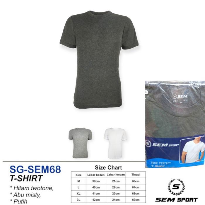 1 PCS KAOS OBLONG SEM 68 SPORT - KAOS OBLONG POLOS PRIA - LEHER O NECK - VARIASI 3 WARNA - PUTIH, M