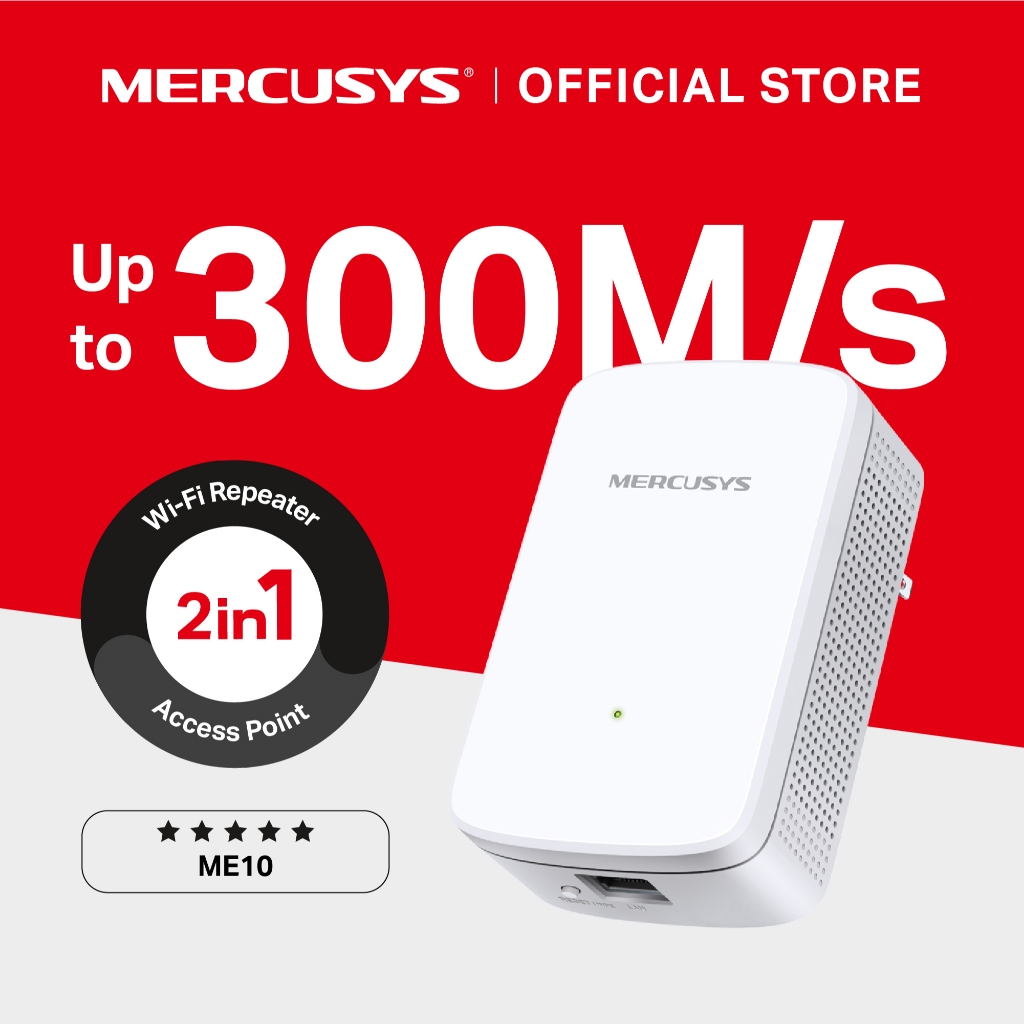Mercusys | ME10 | 300Mbps Wi-Fi Repeater | 2.4Ghz | 10/100Mbps LAN Port | Range Extender | AP e