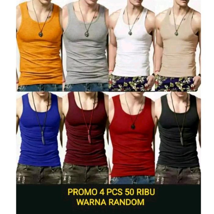 PROMO.... SINGLET PRIA DEWASA 4 PCS/KAOS DALAM PRIA DEWASA TERMURAH - RANDOM, ALL SIZE