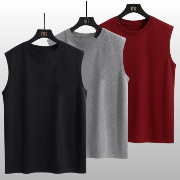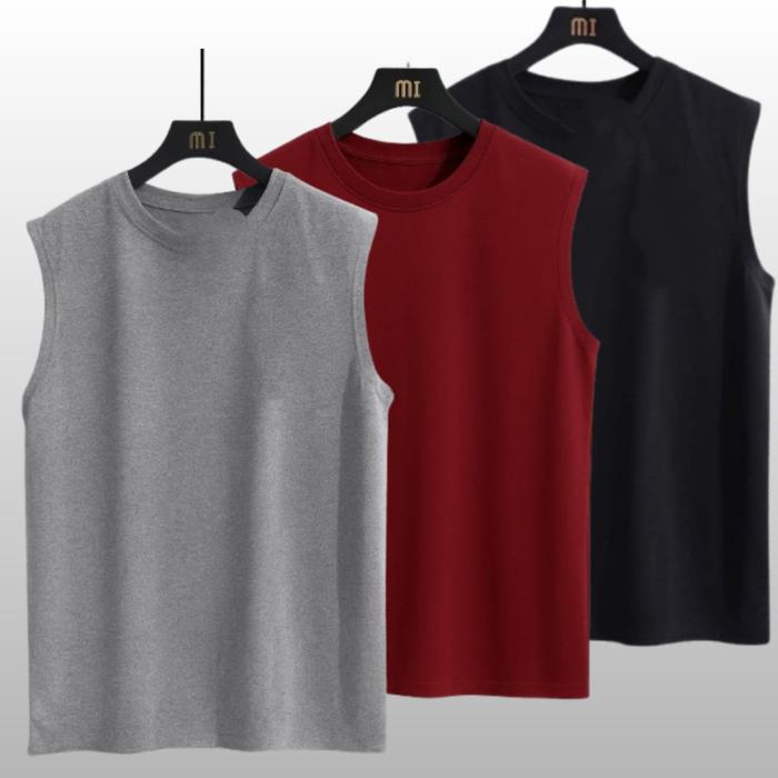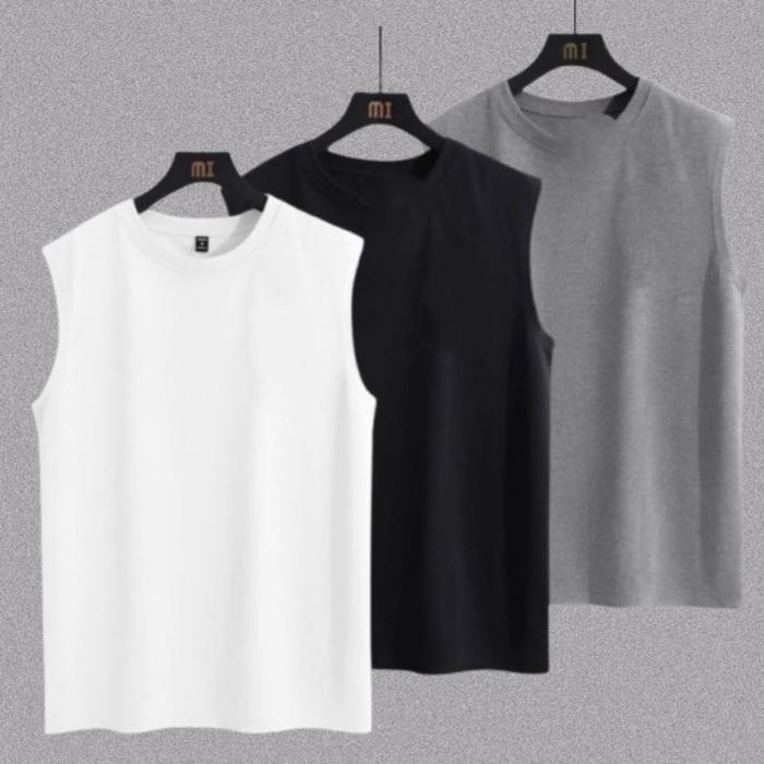 PAKET HEMAT KAOS SINGLET PRIA / KAOS TANKTOP PRIA PAKETAN ISI 3 PCS - ABU MAROM HITAM, M
