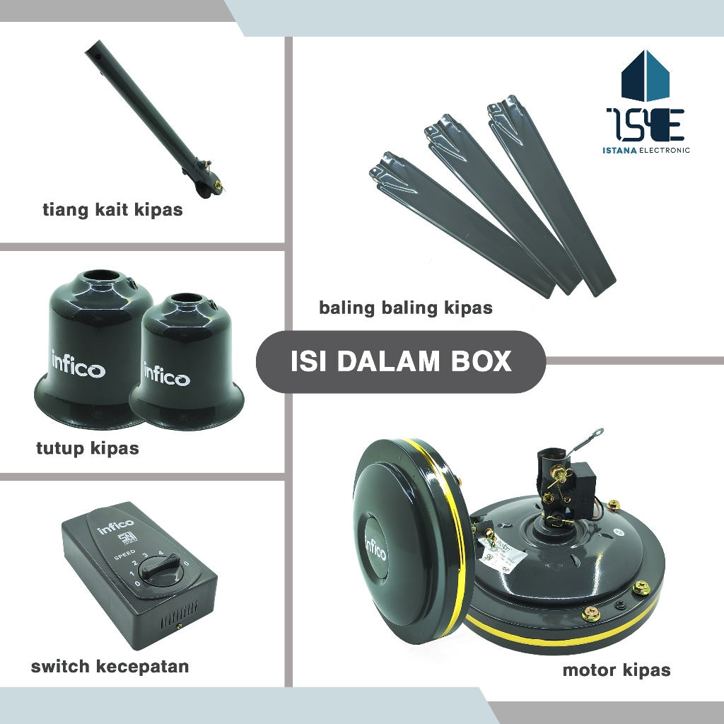 INFICO Kipas Angin Plafon 56 Inch ICF-560 Lampu LED Angin Turbo High Quality Low Watt Harga Murah Terbaik