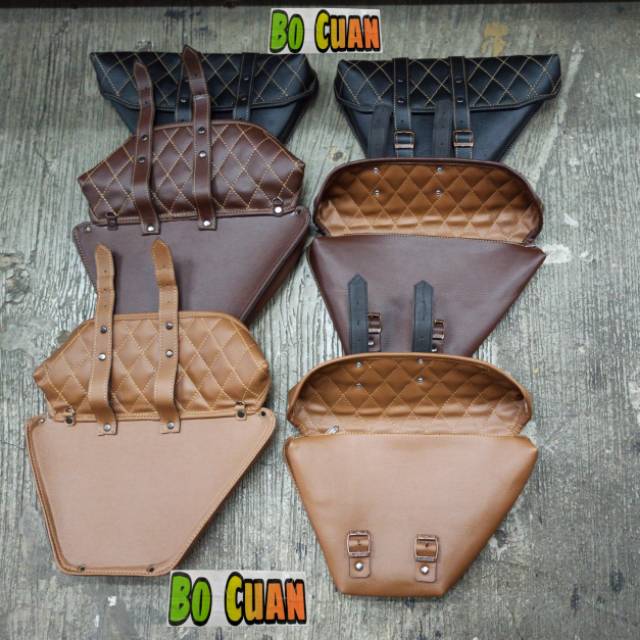 [PROMO] tas custom japstyle bratzstyle caferacer tutup samping aki kulit kustom kastem klasik retro harley