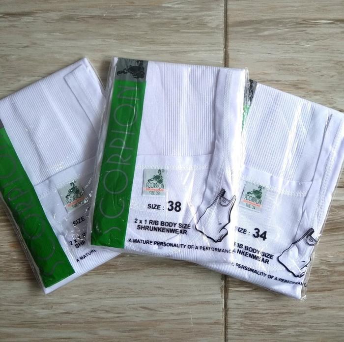 3 PCS KAOS DALAM SCORPION - SINGLET PAKAIAN DALAM PRIA DEWASA - PUTIH SALUR - 34