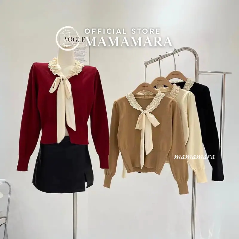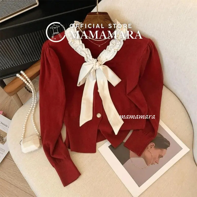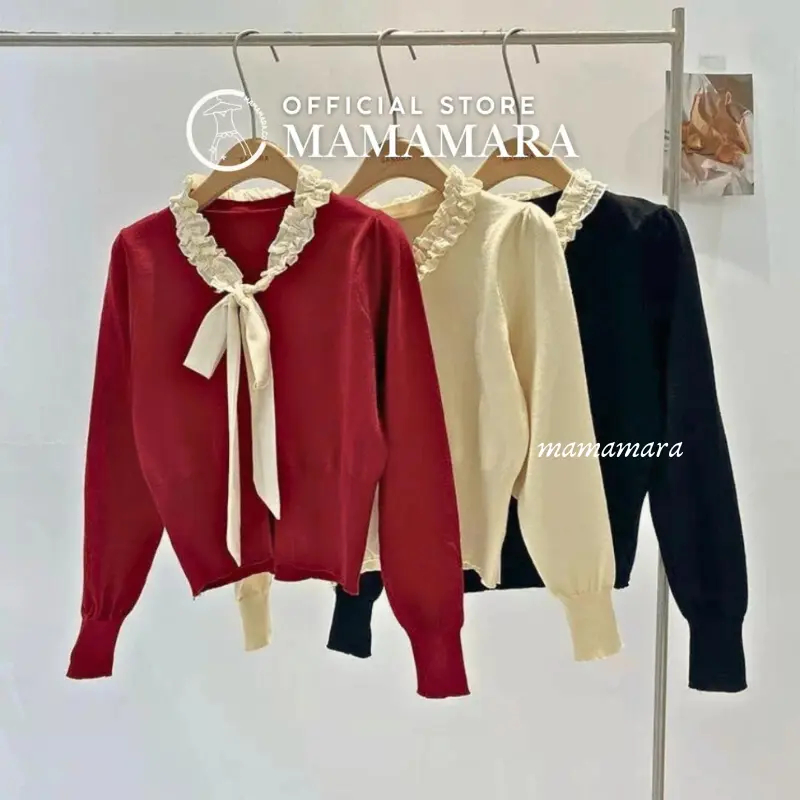 Atasan Rajut Blouse Wanita Leher Pita Syal Round Neck Simple