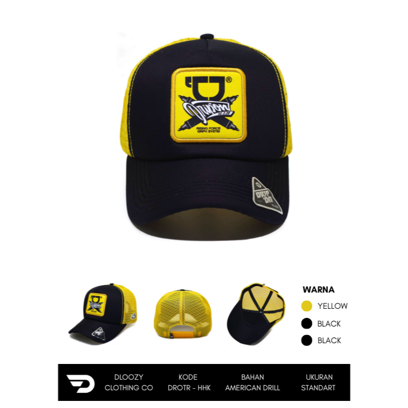 Topi Pria Trucker Jaring Keren Distro DRIPON Dloozy Proshop Original Hitam Kuning DROTR-HHK