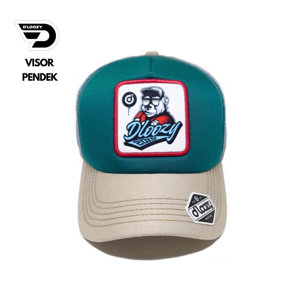 DLOOZY Topi Visor Pendek Original Distro Trucker Jaring Cream Tosca Abu DLZVP-CTA