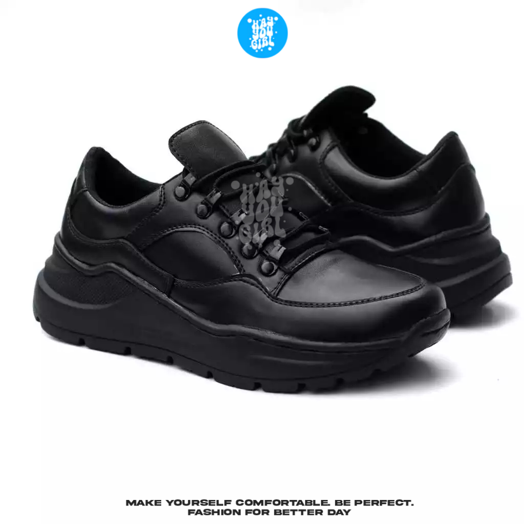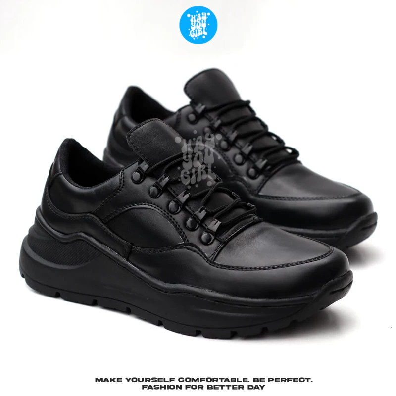 HYG - Sepatu Sneakers Fullhitam Pria Kasual Kerja 39-46