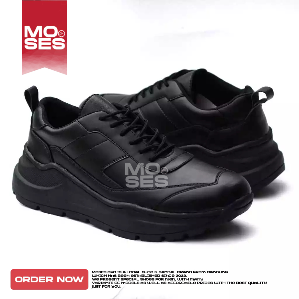 MOSES VANEZIA - Sepatu Sneakers Pria Formal Tali Full Hitam Kerja Pria 39-45