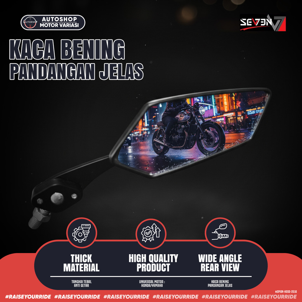 [PROMO] Spion KOSO Segi 5 Sporty – Gagang Besi Kuat Universal Motor