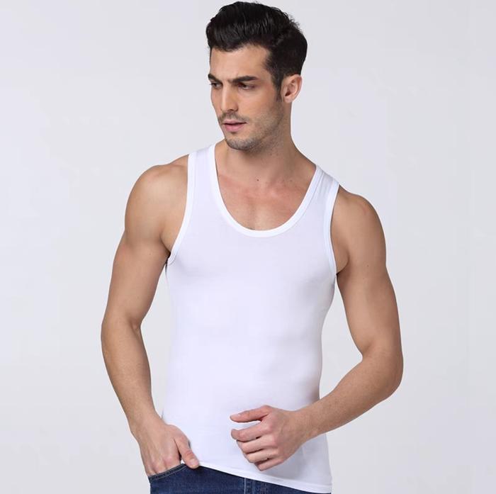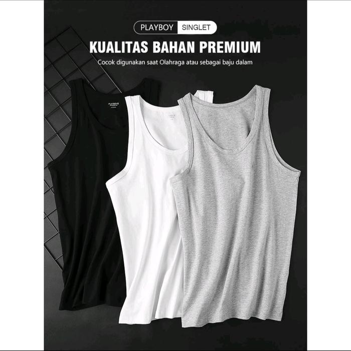 KAOS DALAM PRIA DEWASA SINGLET PRIA TANKTOP JUMBO WARNA POLOS KATUN PREMIUM HITAM PANTAI PUTIH - HITAM-L