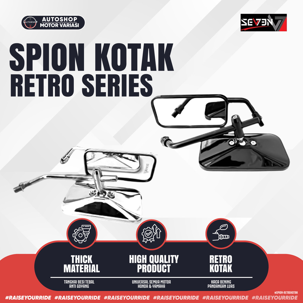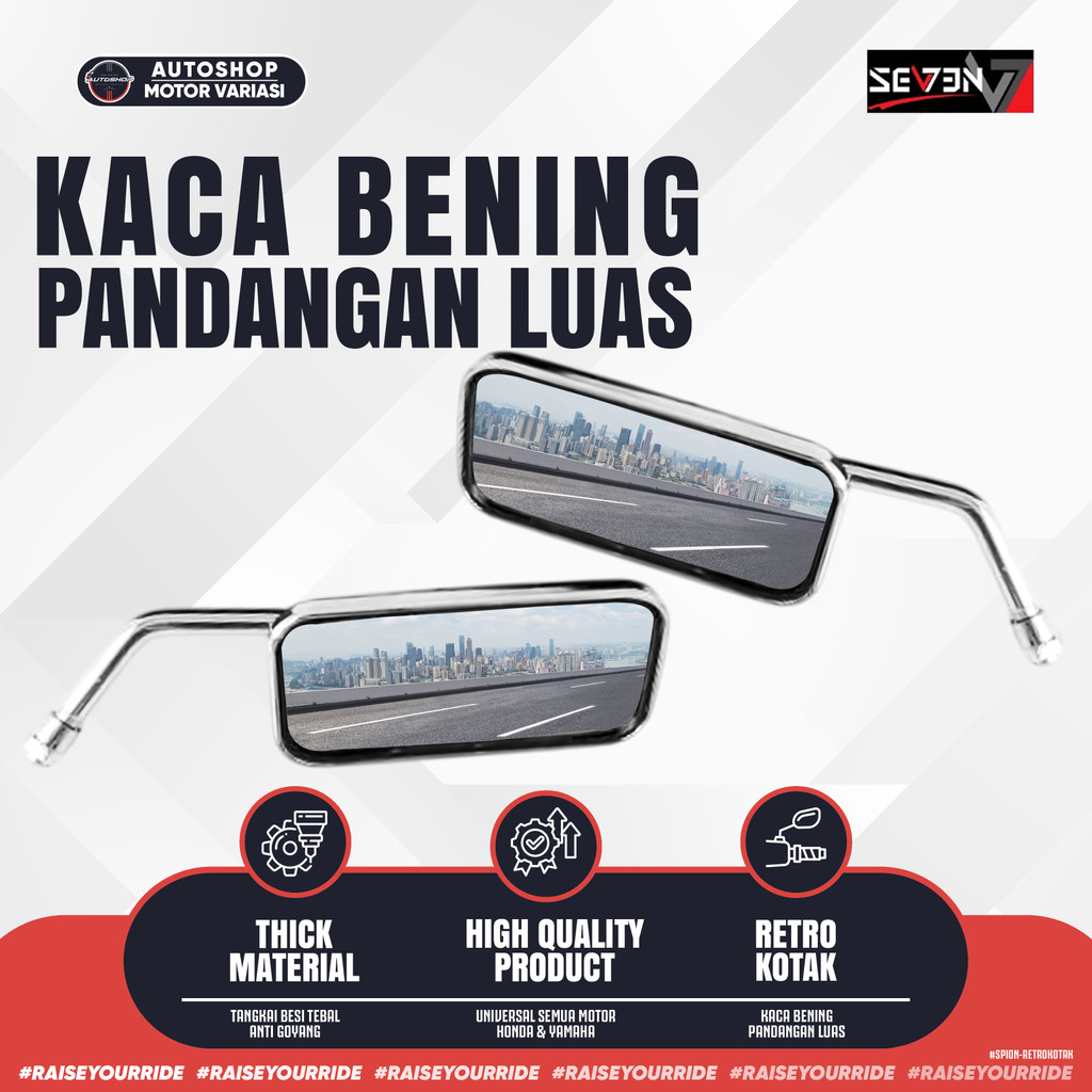 [PROMO] Spion Kotak Classic SEVEN – Kaca Putih Tangkai Besi Tebal Drat Universal CB GL Honda Yamaha