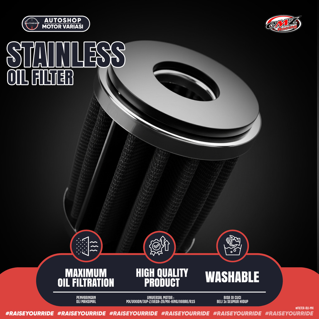 [PROMO] Filter Oli Stainless – Jupiter MX, Vixion, Jupiter Z, Vega ZR, MX King, Xabre, R15 1S7 Original CMZ RACING