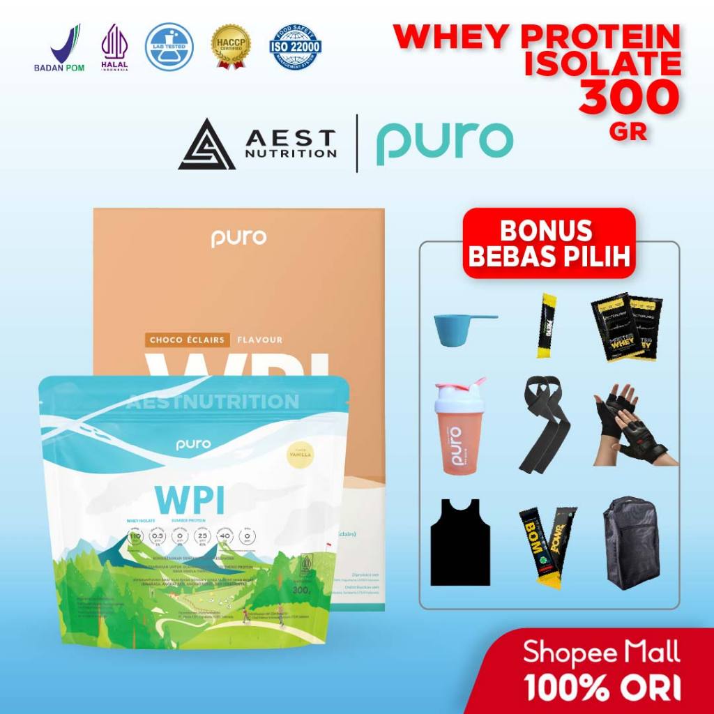 Puro WPI Whey Protein Isolate 300 gram Susu Protein Suplemen Fitness