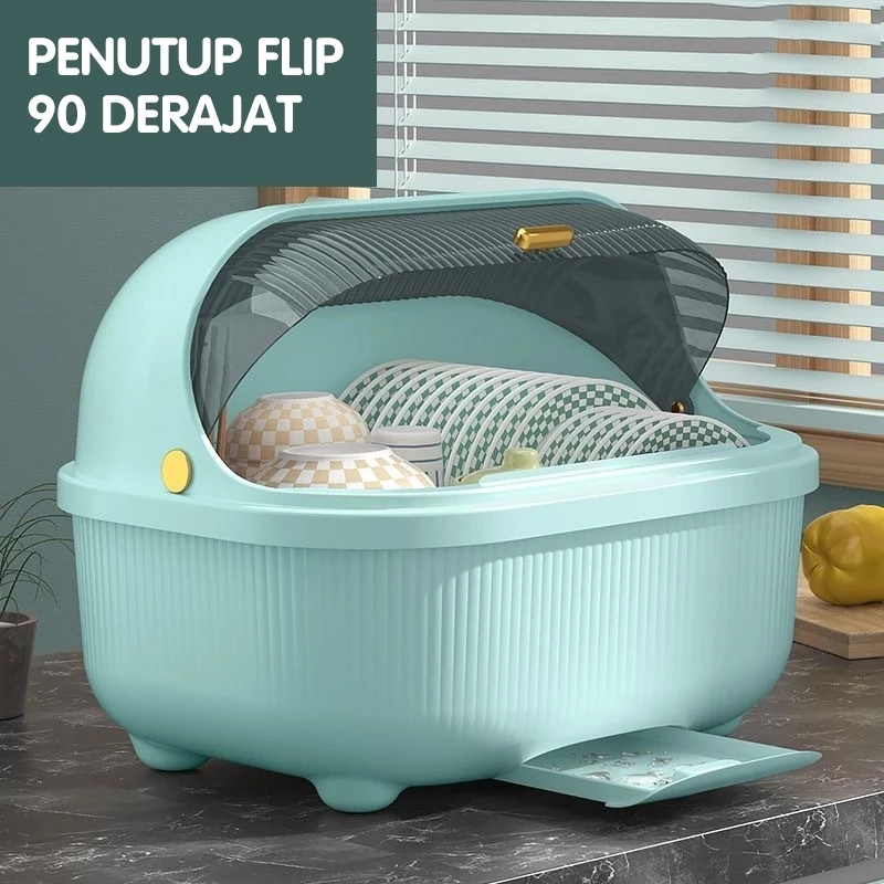 (Ukuran Besar)GYT Rak Piring Dengan Tirisan Air Tempat Penyimpanan Alat Makan Mangkuk Sendok Sumpit Garpu
