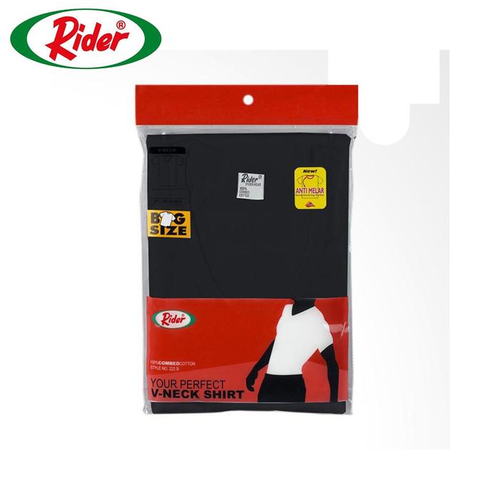 RIDER T-SHIRT - KAOS DALAM PRIA V-NECK R222BWH WARNA HITAM ISI 1 PCS - HITAM, S