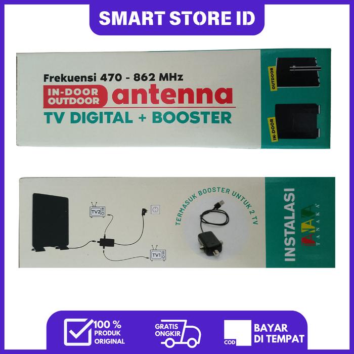 anaka Antena Digital Flat ANT2504 Indoor Outdoor + Kabel 12 Meter + Booster Full HD 1080i