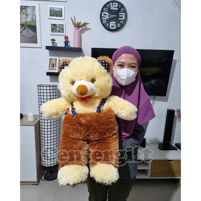 Boneka Teddy Bear OverAll Jojon 65CM Dijamin Besar Termurah - Cream Coklat