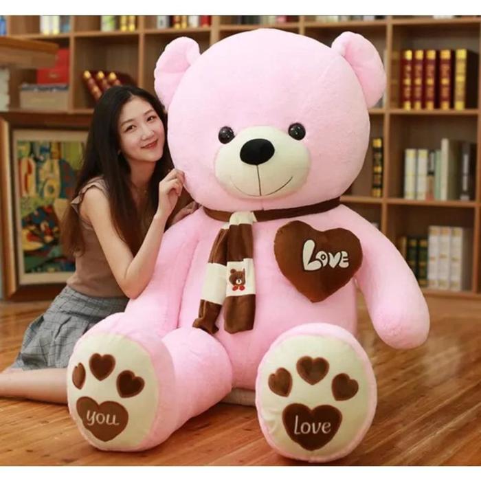 Boneka Teddy Bear Beruang Fluffy Telapak Love Syal Super Jumbo 1.1 METER SNI - Love pink