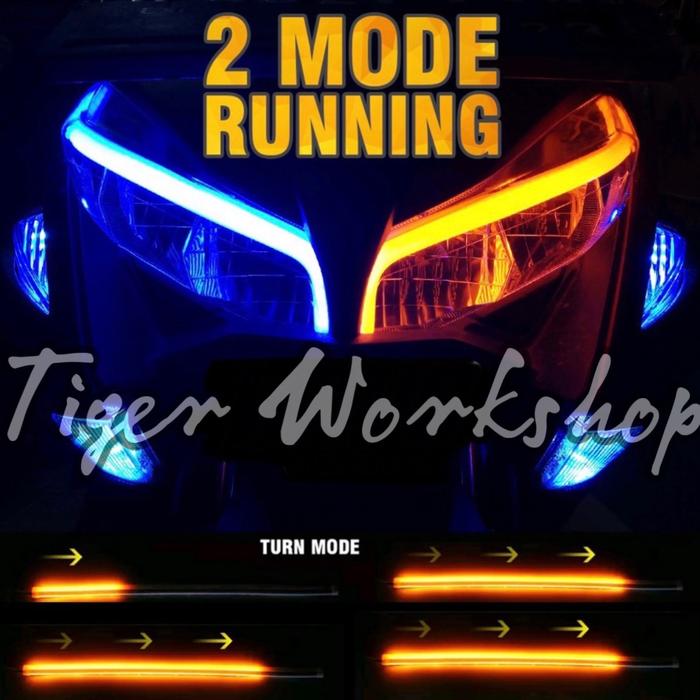 SEPASANG Lampu Alis LED SEN RUNNING WELLCOME LIGHT DRL Alis Slim Fleksibel 30 CM Modul Tanam - Ice Blue - Kuning