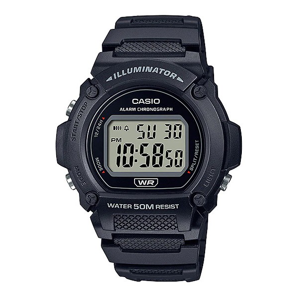 Casio General W219H-1A / W-219H-8B 2A 2A2 4A 8B Jam Tangan Pria Digital Karet Hitam