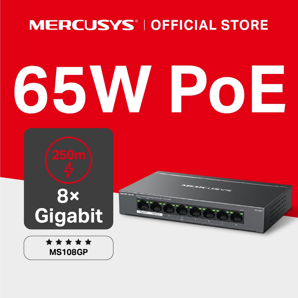 Mercusys | MS108GP | 8-Port Gigabit PoE+ Switch | 10/100/1000Mbps | 65W High Power | Plug and Play