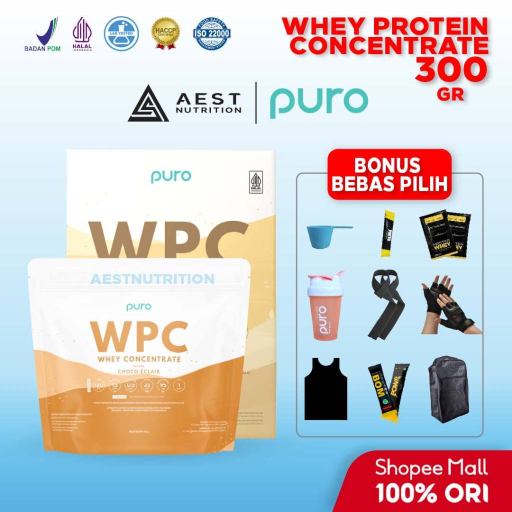 Puro WPC Whey Protein Concentrate 300 gram Susu Protein Suplemen Fitness