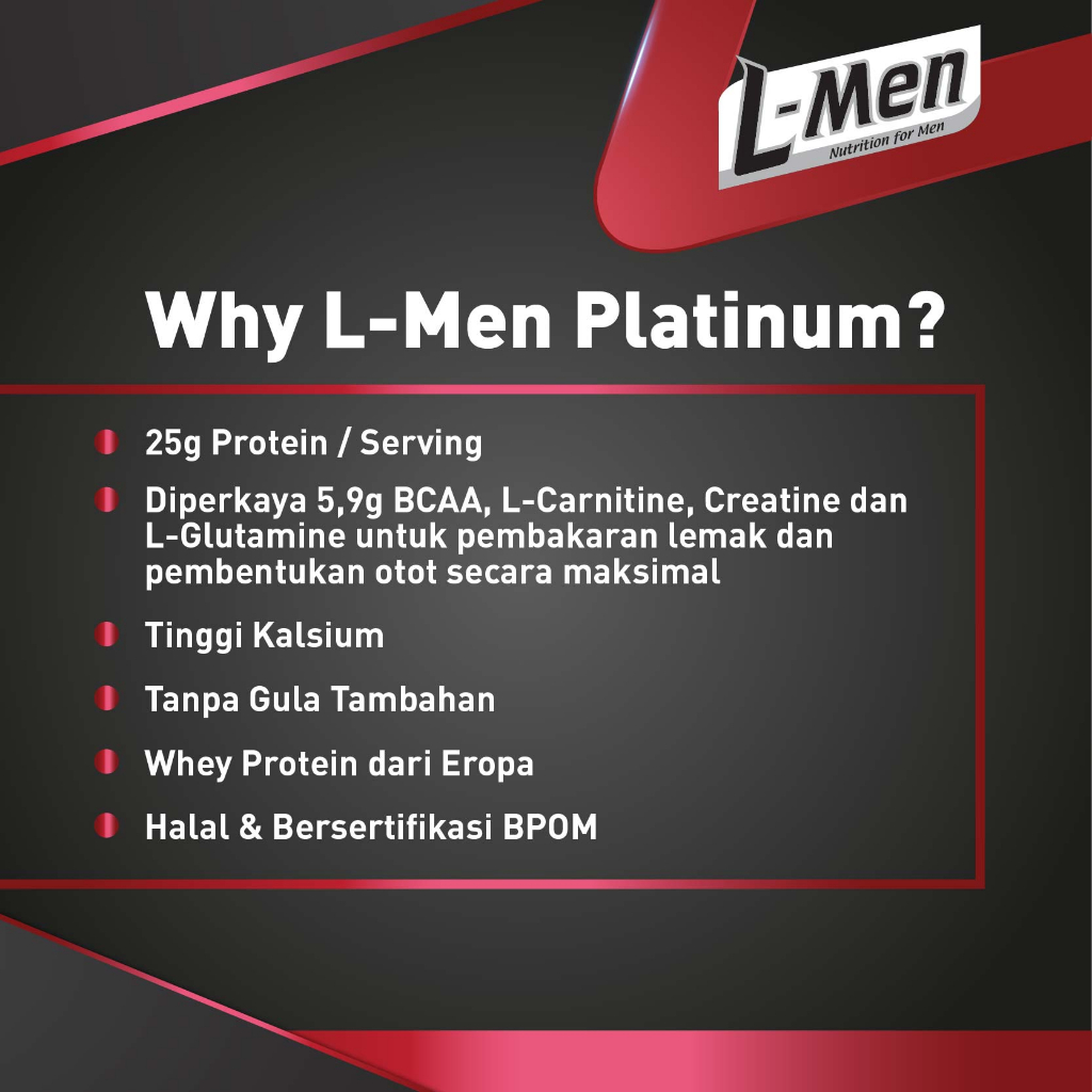 L-Men Platinum Strawberry 800 gram (25 gram protein/serving) / 1,7lbs - 21 Serving - 5,9g BCAA dilengkapi Creatine, L-G