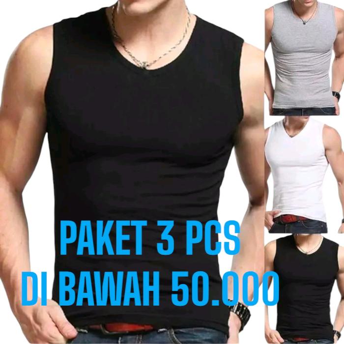 PAKET 3 PCS LEKBONG PRIA/KAOS DALAM PRIA/SINGLET PRIA KATUN LEMBUT - OBLONG, DEWASA, TANK, KEREN, HITAM, COWOK - 3 PCS R