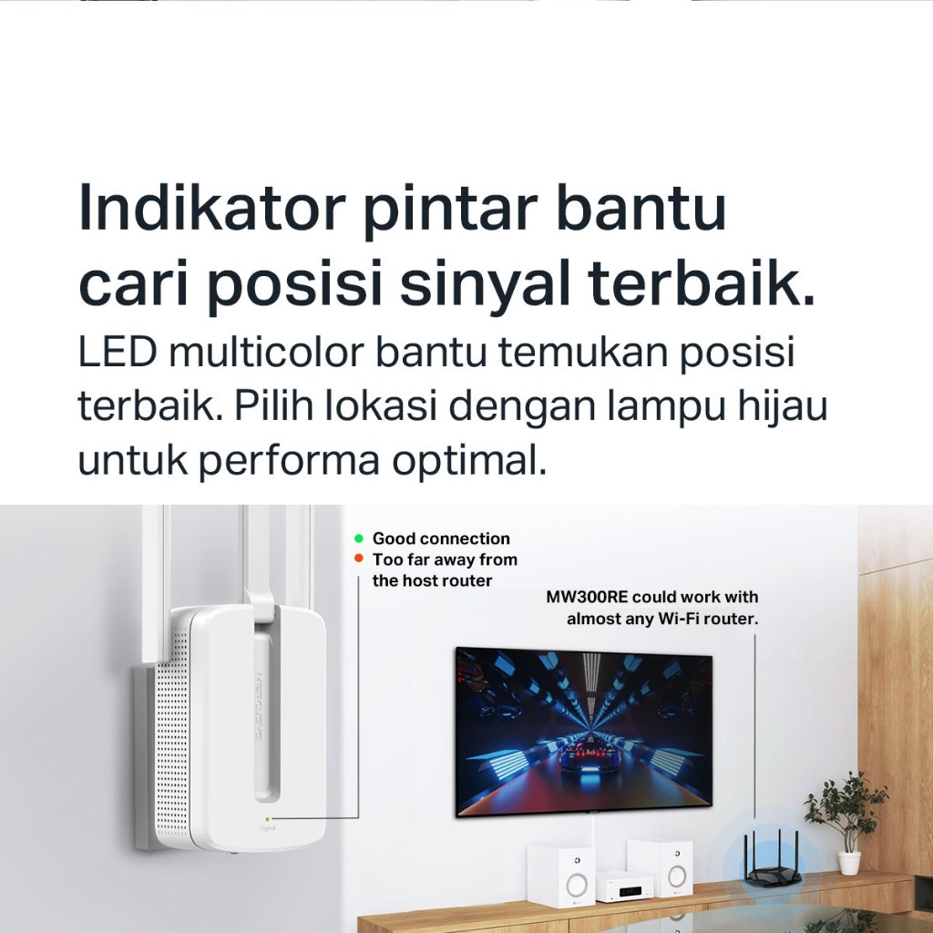 TP-Link | Mercusys MW300RE | 300Mbps Wi-Fi Range Extender | Penguat Sinyal WiFi | Repeater | WPS