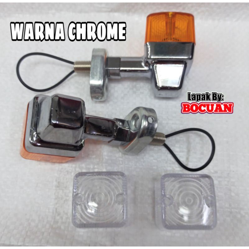 [PROMO] lampu sen motor palu kotak persegi classic klasik cb100 w175 chrome hitam besi custom retro sein