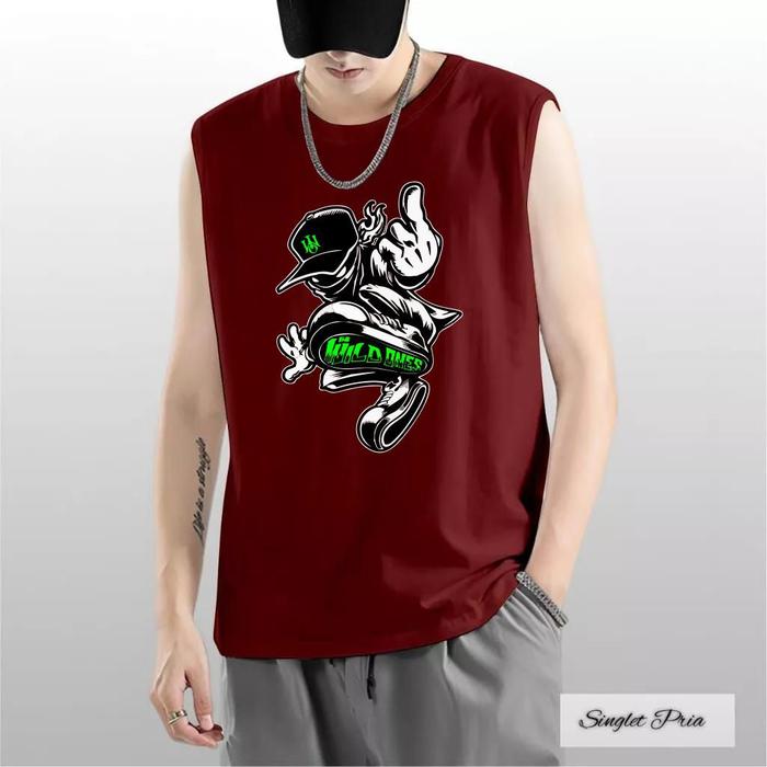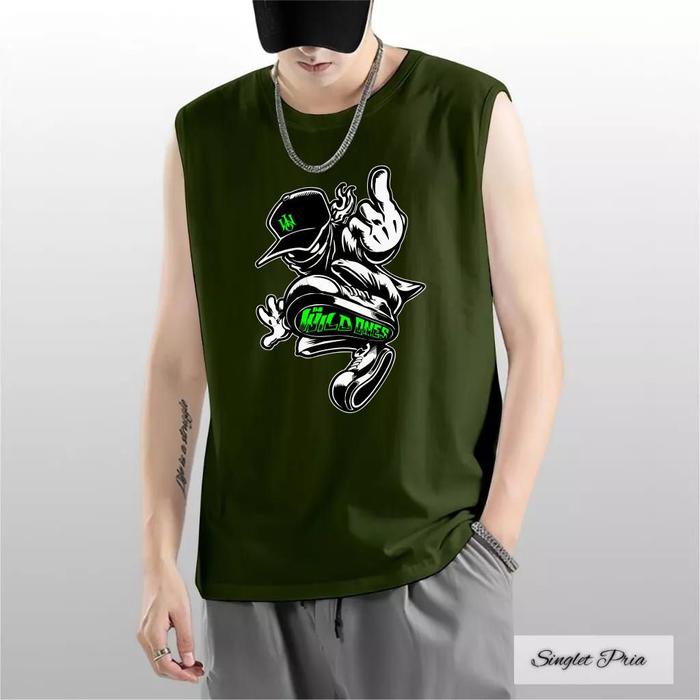 BAJU KAOS SINGLET PRIA DEWASA WILD ONE GYM SANTAI TRENDY | SIZE M,L,XL,XXL / KAOS TANKTOP LEKBONG KATUN - HITAM, M
