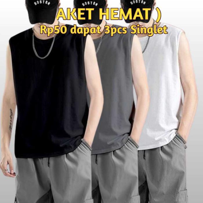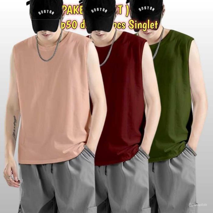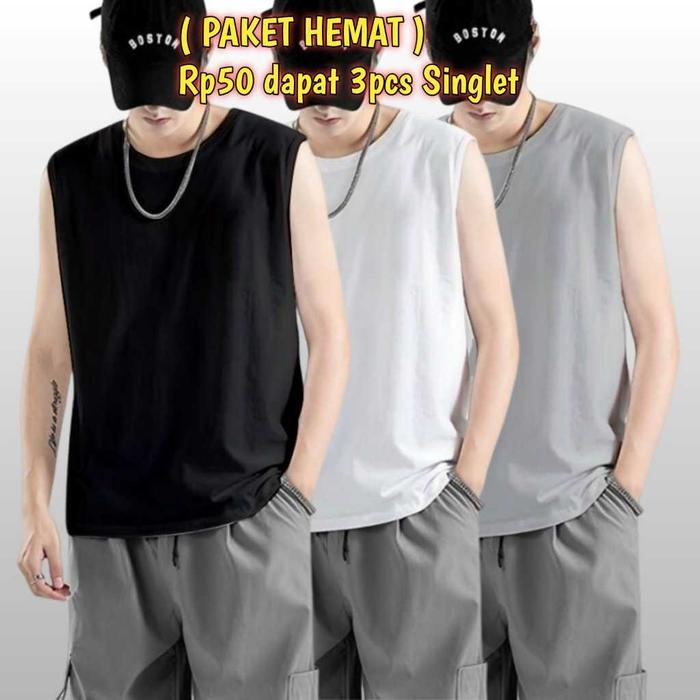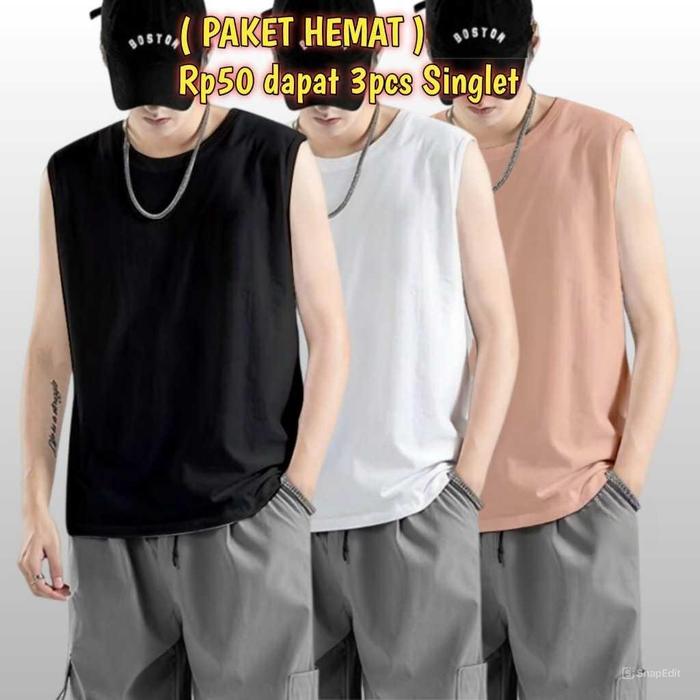 PAKET HEMAT KAOS SINGLET PAKETAN 3 PCS 50RIBU SINGLET SANTAI GYM / BAJU LEKBONG PRIA DEWASA SIZE M - XXL 1KG 2 PAKET - C