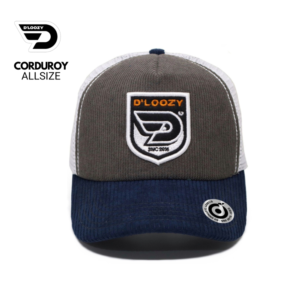 Topi DLOOZY Trucker Hat Corduroy Distro Original Navy Abu Putih DLZCD-NAP
